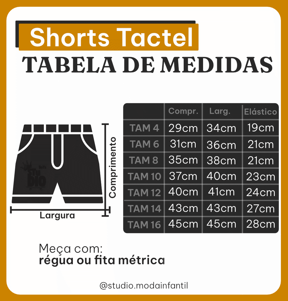 Consulte nossa tabela de medidas para garantir o caimento perfeito e o máximo conforto para seu filho.